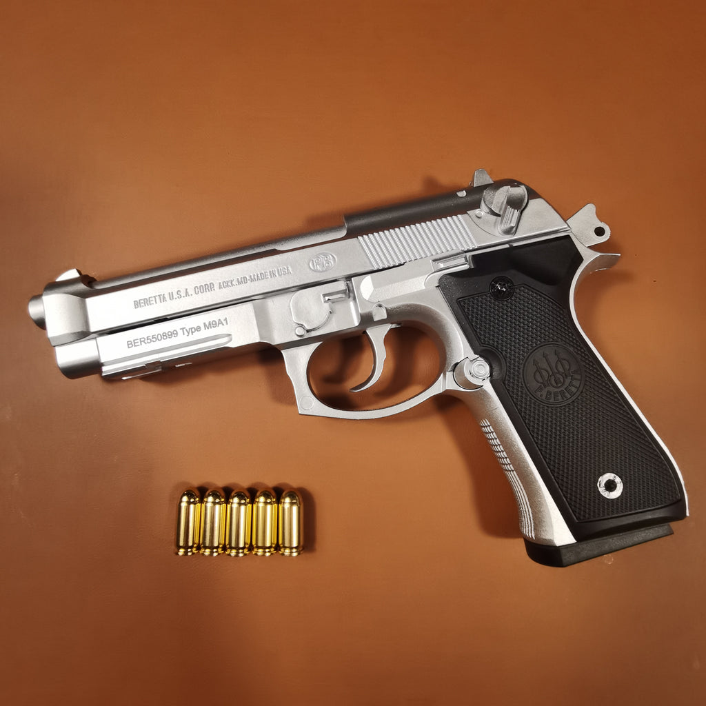 Products include: Beretta M9A1 laser pistol, Magazine, Plastic shells x 9, Metal shells x1. (Laser Target needs to be purchased separately)