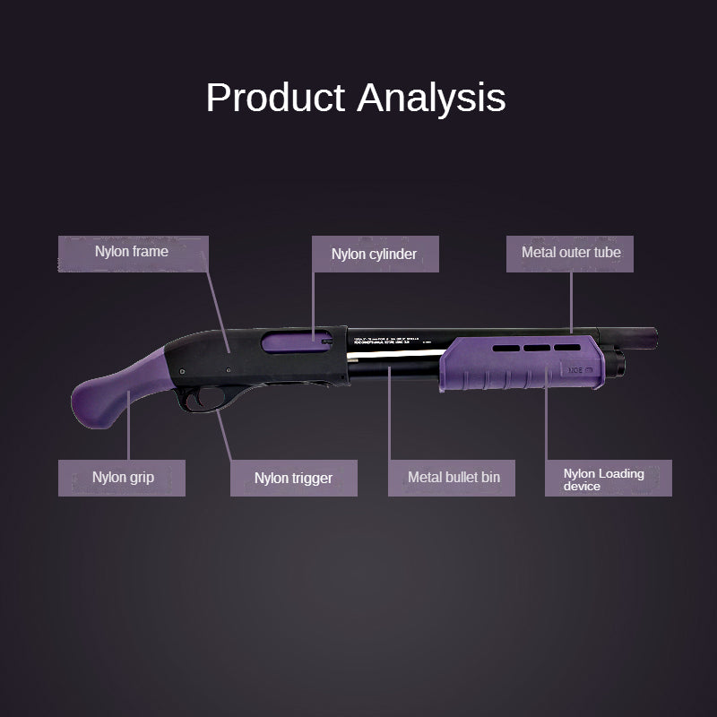 4. Nylon + metal structure, the firing device and internal structure are made of alloy.